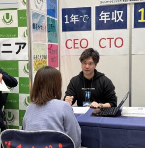 ブースでは、当社の事業内容や開発実績、エンジニアの働き方・キャリアパスについてご紹介し、